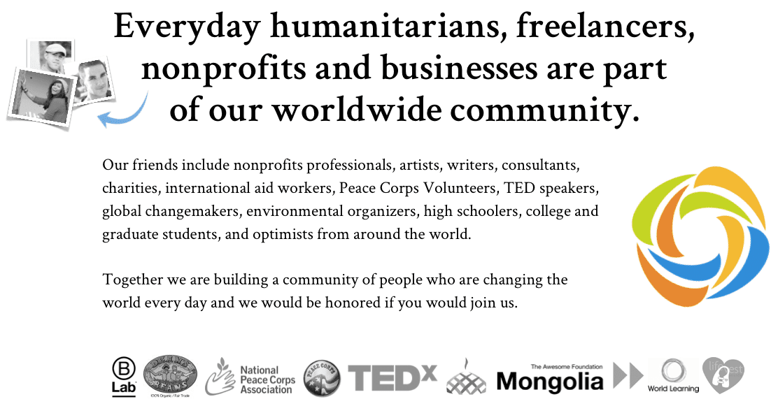 Following my service in the Peace Corps, I created a humanitarian consulting agency called Advance Humanity.